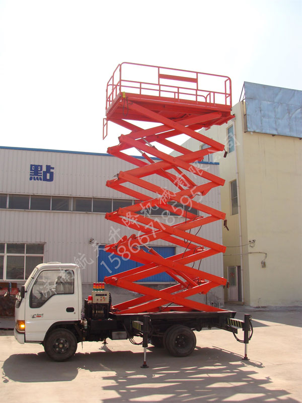 江西航天升降平臺廠家生產(chǎn)的車載剪叉式升降機具有機動性強、工作范圍較大等特點。特別適用于遠距離、大范圍、不同工作場地的高空作業(yè),如公路交通、路燈照明、工程搶險等。平臺動力可使用汽車動力或直流蓄電池,安全可靠。適用的車型有五十鈴、BJ1041、江淮(JAC)、依維柯、福田、東風小霸王、時代小卡等輕型貨車及皮卡。