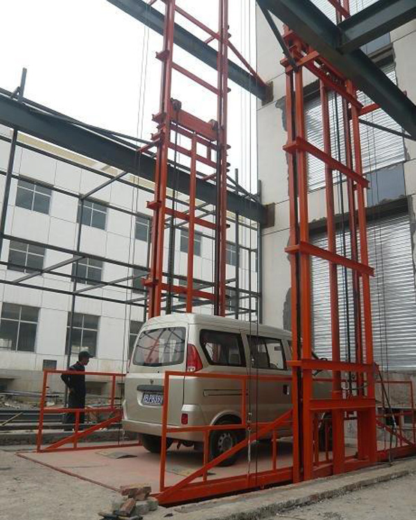 導軌鏈條式汽車液壓升降平臺是一種大噸位汽車或貨車修理和保養單位常用的專用機械舉升設備。是根據導軌式貨梯更改而來。導軌式汽車升降平臺還是通常被當做樓層之間運送汽車的絕佳產品。隨著經濟的發展,私家車不斷增加,停車空間緊缺,在停車庫的建設中,往往會遇到因場地狹小無法采用自走式坡道的情況,為了將汽車搬運到不同平層中存取車輛,就需要采用垂直升降的汽車升降貨梯。這樣汽車升降平臺就可以替代汽車進出車庫的斜坡道,大大節省了停車使用空間,提高車庫的利用率。這種汽車升降貨梯常用于地下或屋頂及建筑自走式車庫存取汽車的搬運。該升降平臺具有無需深挖地坑、安裝環境要求少、維護簡單等特點。