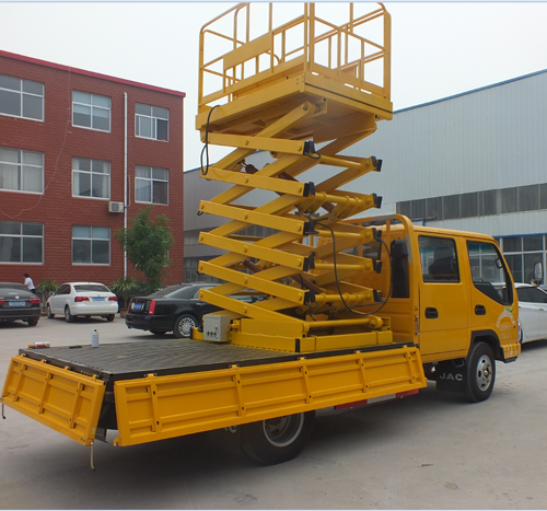 車載剪叉式升降機是整合汽車及剪叉式升降機的優勢于一身的新型高空作業設備。車載剪叉式升降機以小型貨車(汽車)或電瓶車為載體,移動靈活迅速,操作簡單,作業范圍廣。車載剪叉式升降機采用剪式升降結構,剪叉結構采用優質矩形錳鋼管制作,整體強度高,載重量大,升降穩定性好。設備可以利用汽車引擎動力驅動升降機。如果汽車自身不配備取力器接口。升降機的升降動力也可以根據客戶要求選配外接電源或者蓄電池的動力組合,也可以選用柴油機,發電機等動力裝備。若汽車不方便安裝任何動力系統,那么客戶還可以安裝手動升降裝置。車載剪叉式升降機以其汽車移動靈活迅速,操作簡單,作業范廣的優勢,廣泛用于城建、油田、交通、市政、室外廣告等行業。
