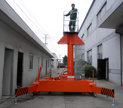 套缸式升降平臺(tái)為多級(jí)液壓缸直立上升,液壓缸高強(qiáng)度的材質(zhì)和良好的機(jī)械性能,塔形梯狀護(hù)架,使升降平臺(tái)有更高的穩(wěn)定性。即使身處50米高空,也能感受其優(yōu)越的平穩(wěn)性能。主要用于電力線路、照明電器、高架管道等安裝維護(hù),高空清潔等單人工作的高空作業(yè)。主要產(chǎn)品分為:?jiǎn)翁莘佬D(zhuǎn)、雙梯防旋轉(zhuǎn)、可傾斜式液壓升降平臺(tái)。