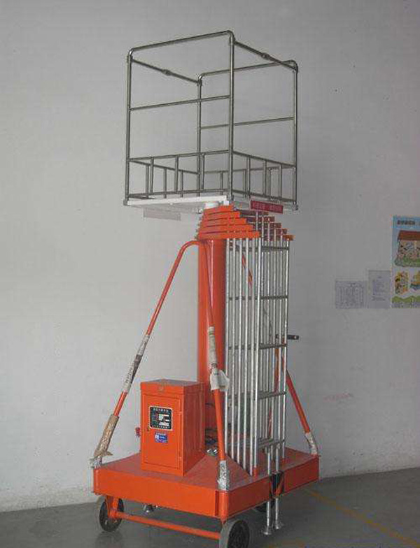 套缸式升降平臺為多級液壓缸直立上升,液壓缸高強(qiáng)度的材質(zhì)和良好的機(jī)械性能,塔形梯狀護(hù)架,使升降平臺有更高的穩(wěn)定性。即使身處50米高空,也能感受其優(yōu)越的平穩(wěn)性能。主要用于電力線路、照明電器、高架管道等安裝維護(hù),高空清潔等單人工作的高空作業(yè)。主要產(chǎn)品分為:單梯防旋轉(zhuǎn)、雙梯防旋轉(zhuǎn)、可傾斜式液壓升降平臺。