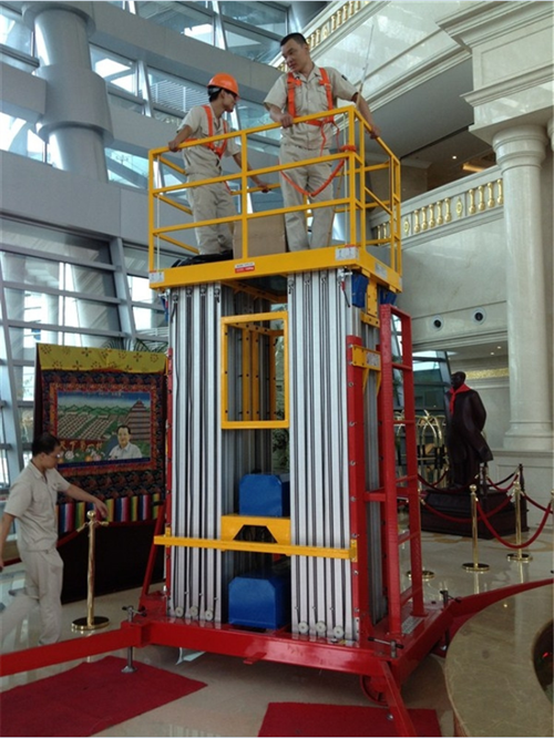 鋁合金升降機(jī)系列產(chǎn)品為多為室內(nèi)型,廣泛適用于星級酒店,大型超市等各行業(yè)大廳、廠房內(nèi)的高空作業(yè),具有升降平衡,操作方便,能進(jìn)入一般門廳,可隨意進(jìn)出電梯且耗電少、無污染、工作時不傷地面,可用于貼墻工作及探出作業(yè),工作無死角。鋁合金式液壓升降平臺產(chǎn)品采用高強(qiáng)度優(yōu)質(zhì)鋁合金材料,動力經(jīng)過液壓泵站帶動鏈條傳動,結(jié)構(gòu)合理設(shè)計緊湊。鋁合金升降作業(yè)平臺根據(jù)升高高度分為單柱、雙住、三柱和四柱式,具有造型美觀、體積小、重量輕、升降平穩(wěn)等優(yōu)點(diǎn),并能夠上下操作,升降平臺廣泛用于酒店賓館、車站候車室、機(jī)場候機(jī)樓、影劇院、展覽館、體育館等場所,是保養(yǎng)機(jī)具、油漆裝修、調(diào)換燈具、電器、清潔保養(yǎng)等用途的最佳安全高空作業(yè)伴侶。