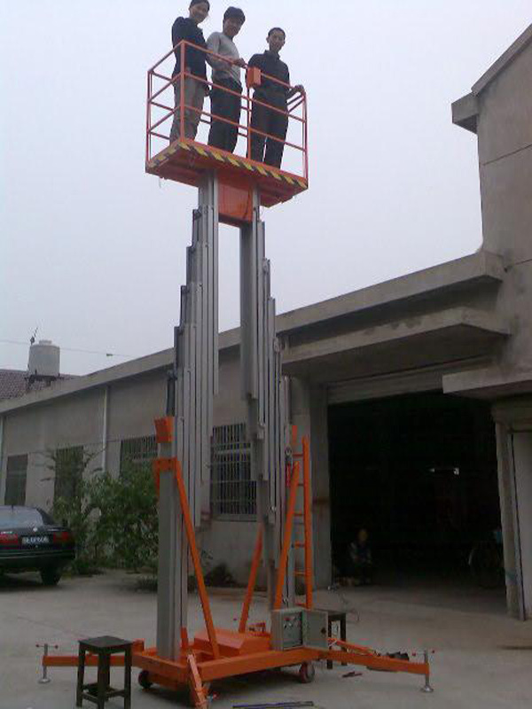 鋁合金升降機系列產品為多為室內型,廣泛適用于星級酒店,大型超市等各行業大廳、廠房內的高空作業,具有升降平衡,操作方便,能進入一般門廳,可隨意進出電梯且耗電少、無污染、工作時不傷地面,可用于貼墻工作及探出作業,工作無死角。鋁合金式液壓升降平臺產品采用鋁合金材料,動力經過液壓泵站帶動鏈條傳動,結構合理設計緊湊。鋁合金升降作業平臺根據升高高度分為單柱、雙住、三柱和四柱式,具有造型美觀、體積小、重量輕、升降平穩等優點,并能夠上下操作,升降平臺廣泛用于酒店賓館、車站候車室、機場候機樓、影劇院、展覽館、體育館等場所,是保養機具、油漆裝修、調換燈具、電器、清潔保養等用途的伴侶。