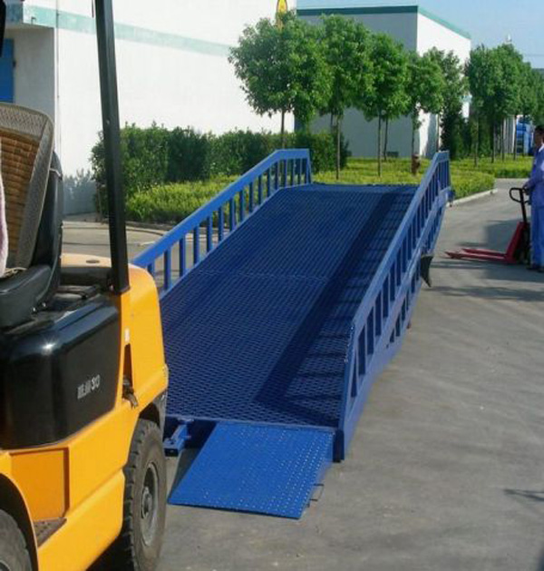 移動式液壓登車橋主要用于無裝卸設(shè)備的貨臺及流動裝卸場所,可與叉車配合使用,是貨物裝卸專用輔助設(shè)備。產(chǎn)品可達到的最低高度為1.1米,最高高度為1.8米,可以根據(jù)貨車高度進行調(diào)節(jié),是裝卸貨物不可缺少的升降液壓設(shè)備之一。移動式液壓登車橋的主要作用是在地平面與車廂之間搭起一座橋,有了它,叉車能直接從地面攜帶貨物駛?cè)肫囓噹麅?nèi)部,進行批量裝卸作業(yè)。使用時前板架在貨車車廂上,起到承載重量的作用,減少了貨物重量對液壓設(shè)備的壓力,保證了液壓登車橋的使用壽命,從而達到長期使用的目的。借助液壓登車橋,叉車能直接駛?cè)肫嚰b箱內(nèi)部進行批量裝卸作業(yè)。
