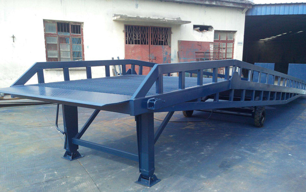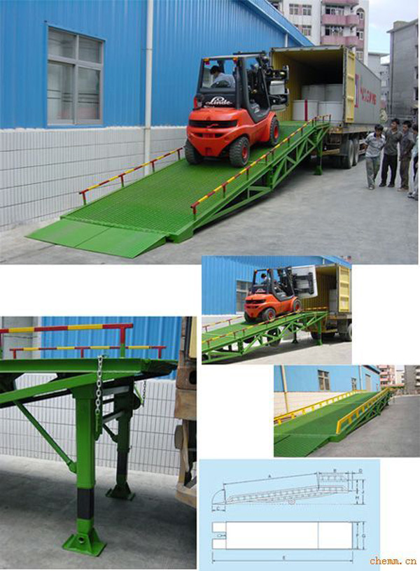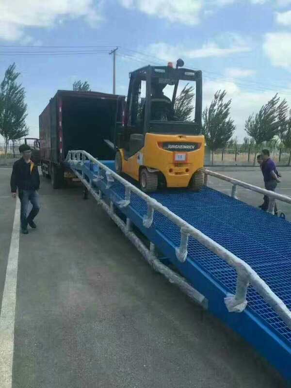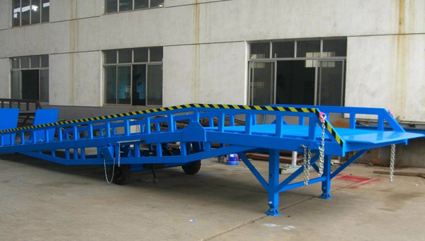 移動式液壓登車橋產品采用人工液壓動力,不需外接動力電源,只需單人操作,就可以實現貨物的安全快速裝卸,節省時間和人力資源。它可使企業減少大量勞動力,成倍提高裝卸作業效率,加快貨物流通速度,獲取更大經濟效益。移動登車橋被廣泛應用于無裝卸設備的貨臺及流動裝卸場所,是與叉車配合使用的貨物裝卸輔助設備。并可以根據不同的車型及裝車過程車廂的高度變化進行調節。廣泛應用于大型化工工廠運輸備料、物流集散中心運輸貨物、港口碼頭上下集裝箱,移動式液壓登車橋廣泛的應用各種物流或者工礦企業的裝卸貨物的工作當中。